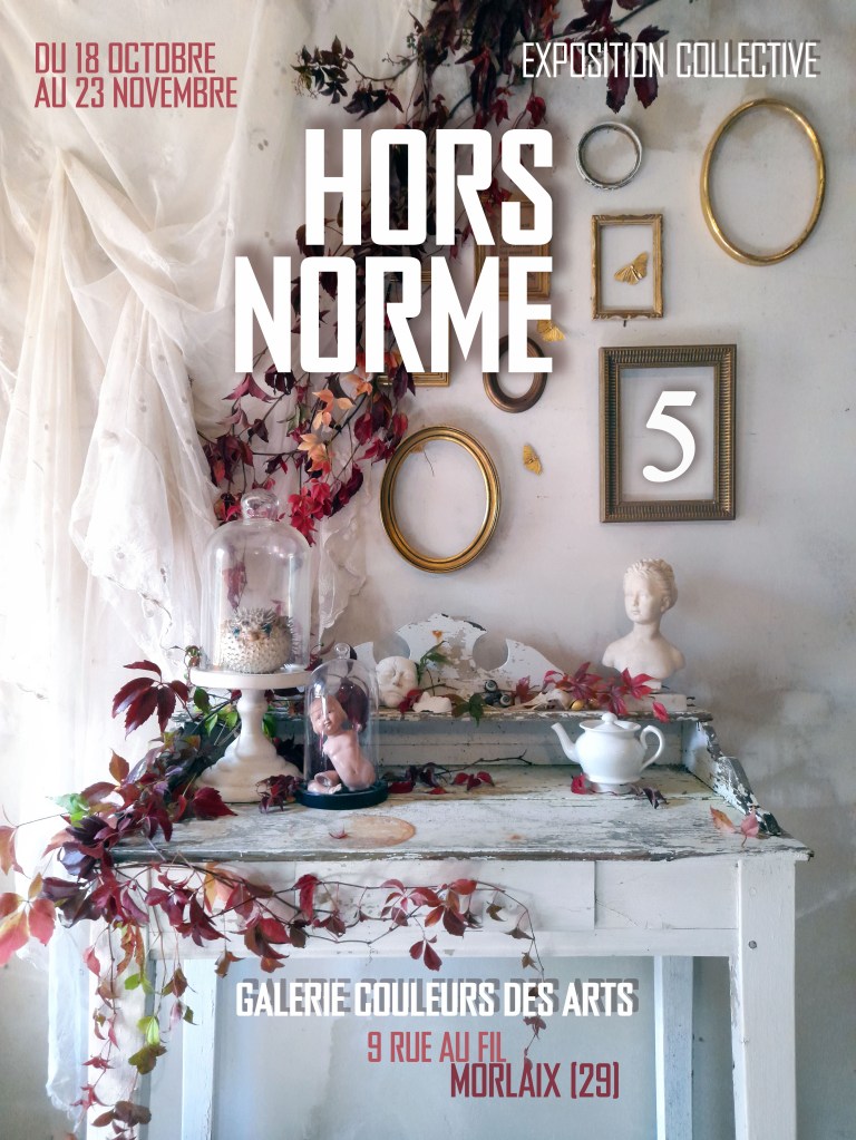 Pour la 5e année consécutive, mes travaux seront visibles, dès le samedi 18 octobre, à la 5e édition de l’exposition collective «Hors Norme». Organisé par Pétrikhor, l’évènement se déroulera, comme chaque année, à la galerie Couleurs des Arts de Morlaix !